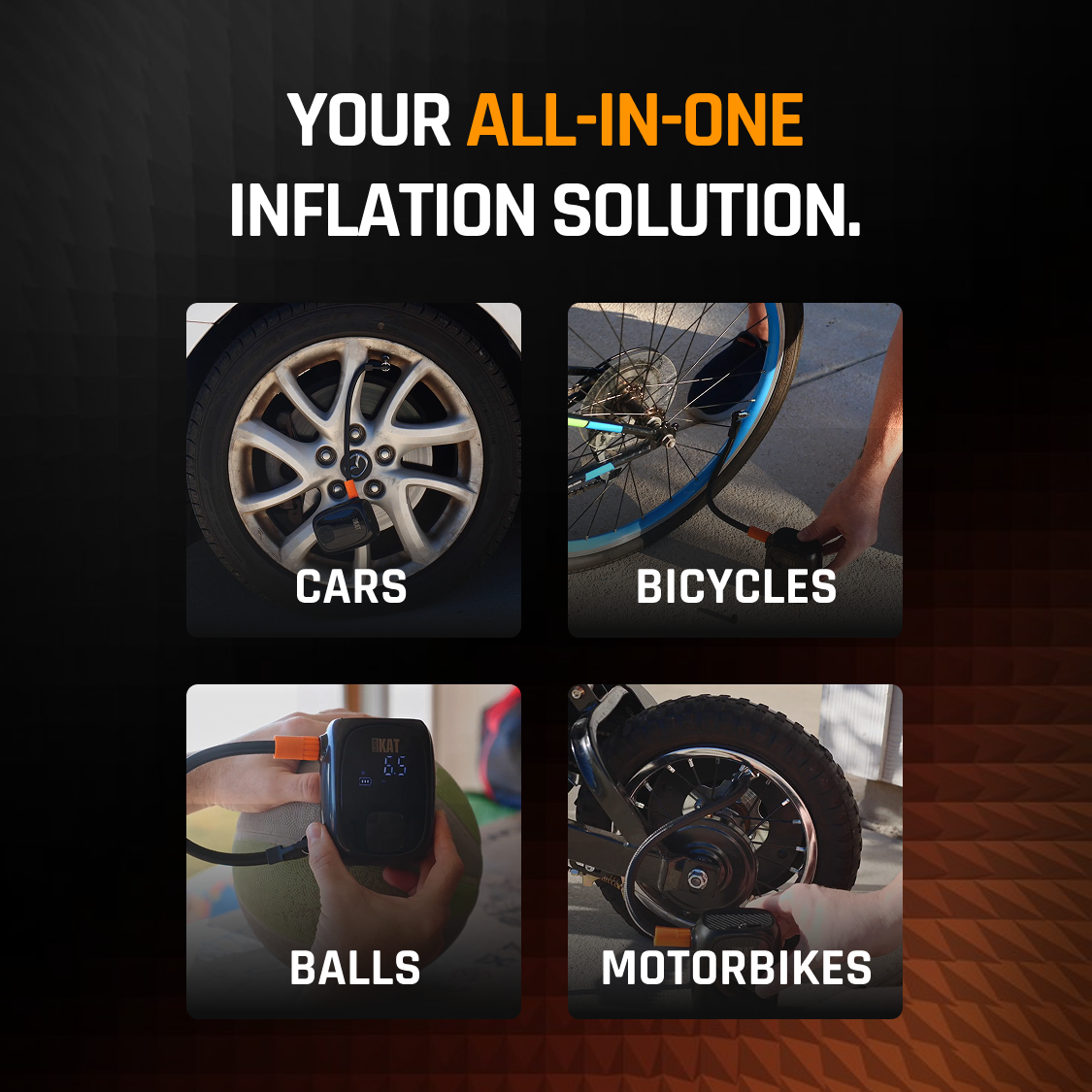 - Powerful 150 PSI: Inflate car, bike, and scooter tires